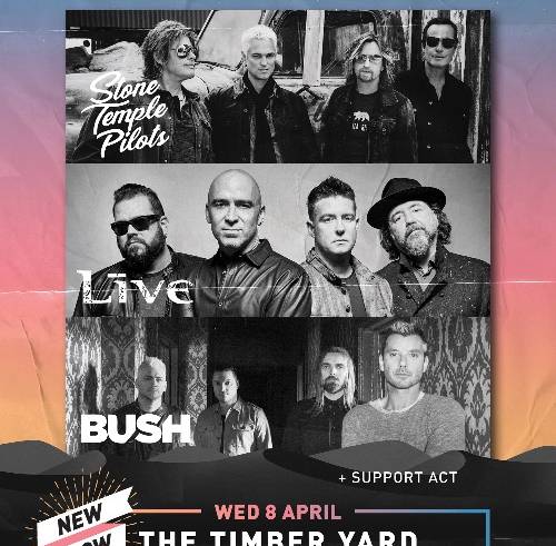 While the UTSS festival shows will see the three international headliners rotate their playing positions at each show, the line up at The Timber Yard will see a local act open the show before Stone Temple Pilots take the stage, followed by +Live+ and Bush will close out the evening.