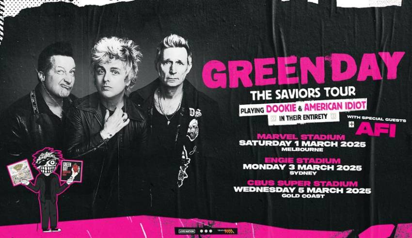 Global rock superstars Green Day – Billie Joe Armstrong, Mike Dirnt and Tré Cool – have officially shared details of the Australian leg on their massive 2024/25 global stadium tour – The Saviors Tour, presented by Live Nation and Triple M.