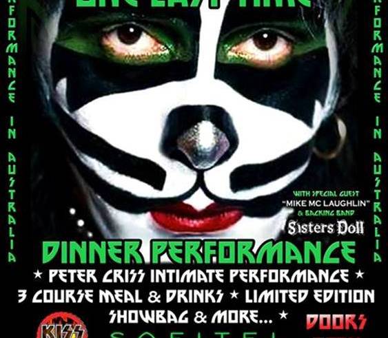 Shout Out Loud Events are proud to announce the Rock ‘n’ Roll Hall of Fame Member, Legendary Founding member and Catman of KISS Peter Criss One Last Time Dinner Performance Show at The Sofitel on Melbourne 12th May 2017 as well as Peter’s Signing & Photo sessions with fans at The Australian KISS Konvention at Wick Studios 13th & 14th May.